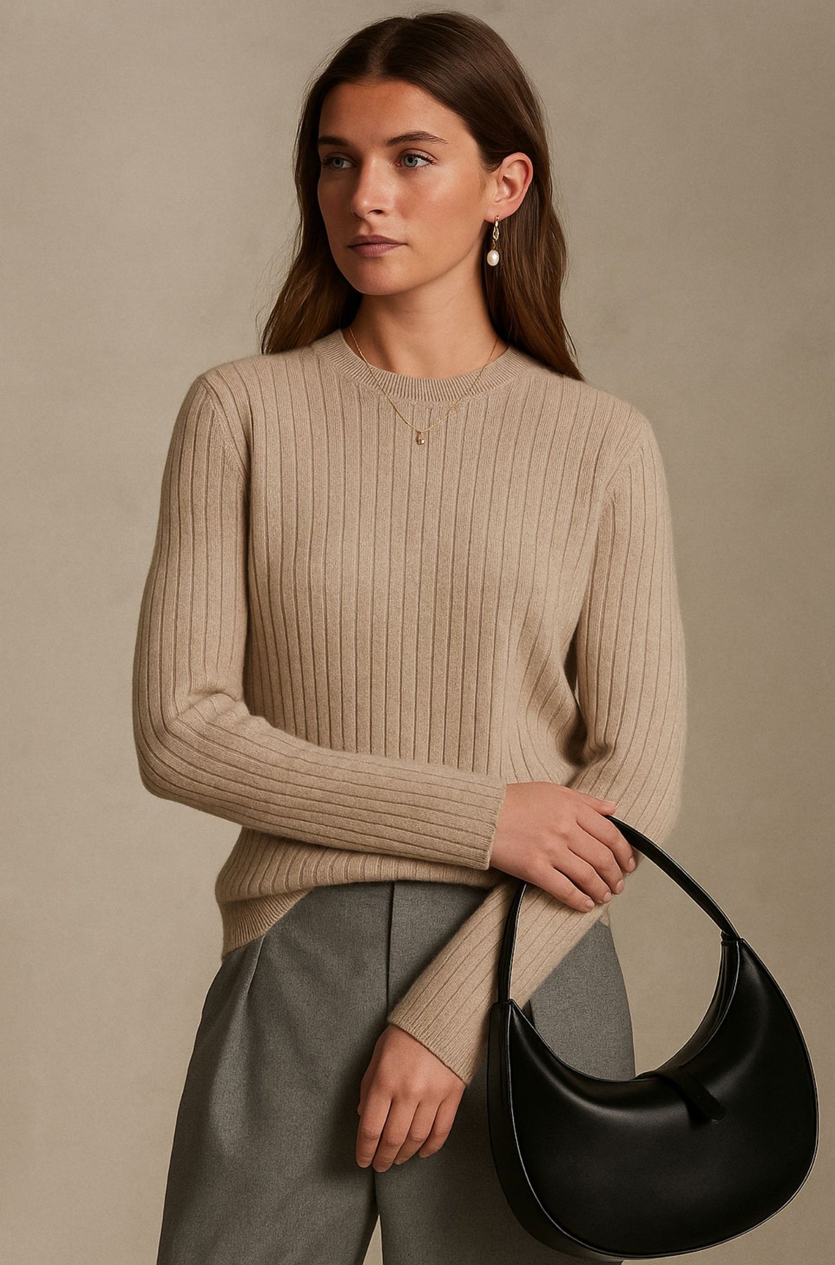 An elevated essential for the refined wardrobe — the Rowen & Vale 100% Cashmere Ribbed Crew Neck Jumper combines minimalist design with the luxurious softness of pure cashmere.